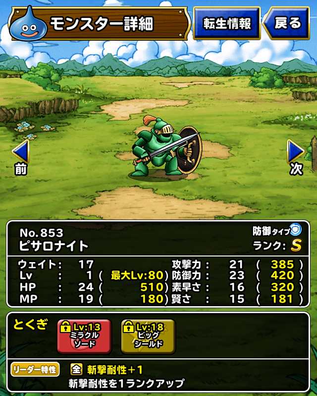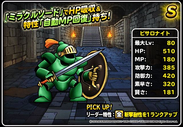 魔法のダンジョン超級でピサロナイトが仲間になりました ステータスなど。