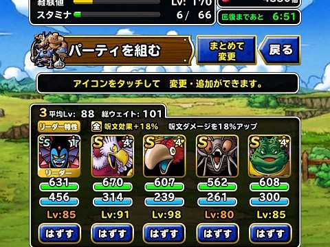 バラモスブロスとゾンビを倒さなくてもクリアを達成できたので、暇があったらその都度周回していました。最後の1周だけ上スタミナ草を使ったほかは自然回復のみです。スタミナ回復速度2倍は思った以上に恩恵が大きいですね。