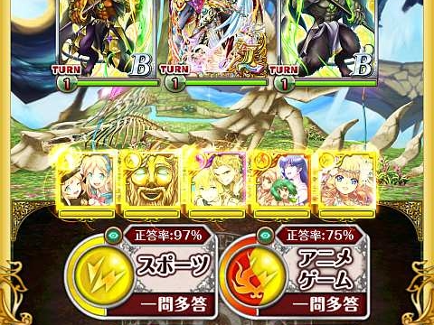 | <純属性大魔術>必要正解数:>11 スキル反射を無視し、敵全体へ雷属性のダメージ、雷単体の精霊が多いほどダメージアップ(効果値:1600) |